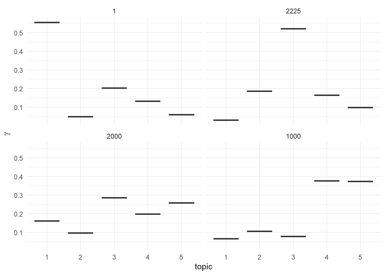 labs(x = "topic", y = expression(gamma)) +